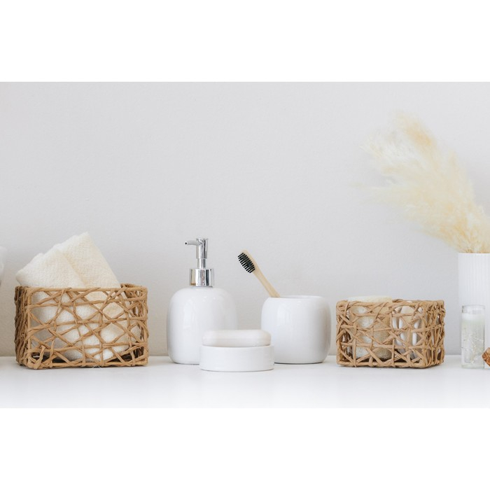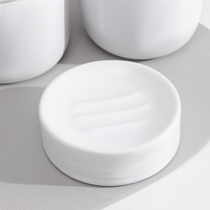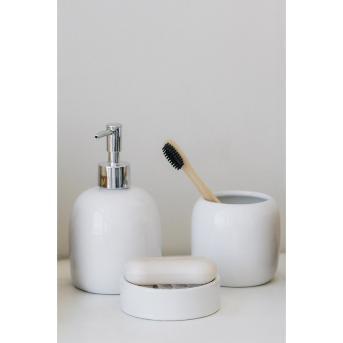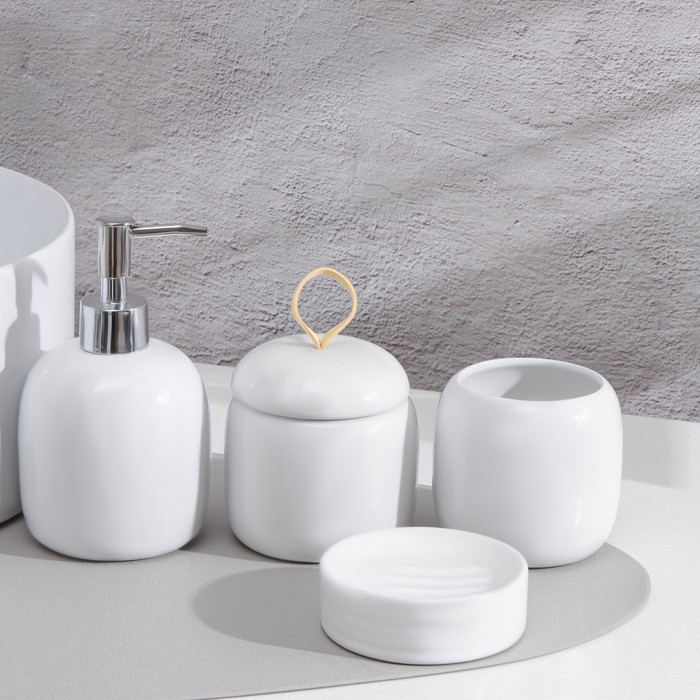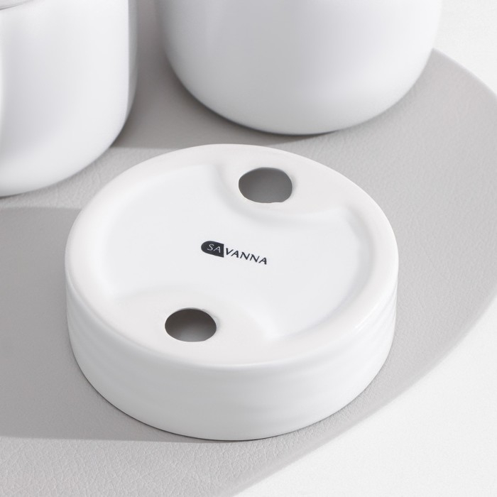 Набор аксессуаров для ванной комнаты SAVANNA Monro, 4 предмета (мыльница, дозатор для мыла 450 мл, стакан, баночка), цвет белый
