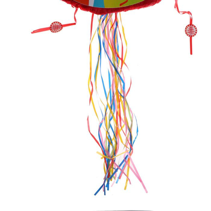 В отличие от традиционной, пиньяту с лентами разбивать не надо. Подвесьте её к потолку или на дерево и по очереди тяните за специальные верёвочки. Только одна из них раскроет пиньяту. Подходит для игры в маленьких помещениях: не придётся замахиваться для удара.