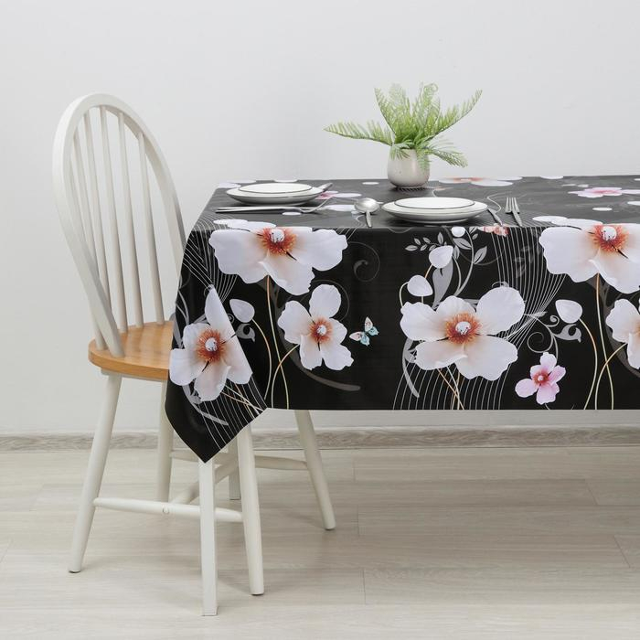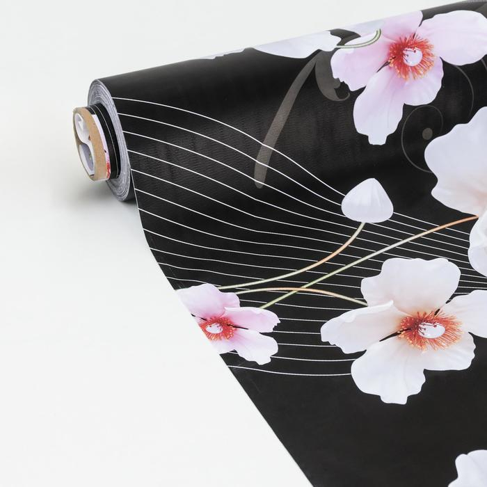 Клеёнка на стол «Мелодия цветов», на тканевой основе, ширина 137 см, рулон 20 м, толщина 0,25 мм, цвет чёрный