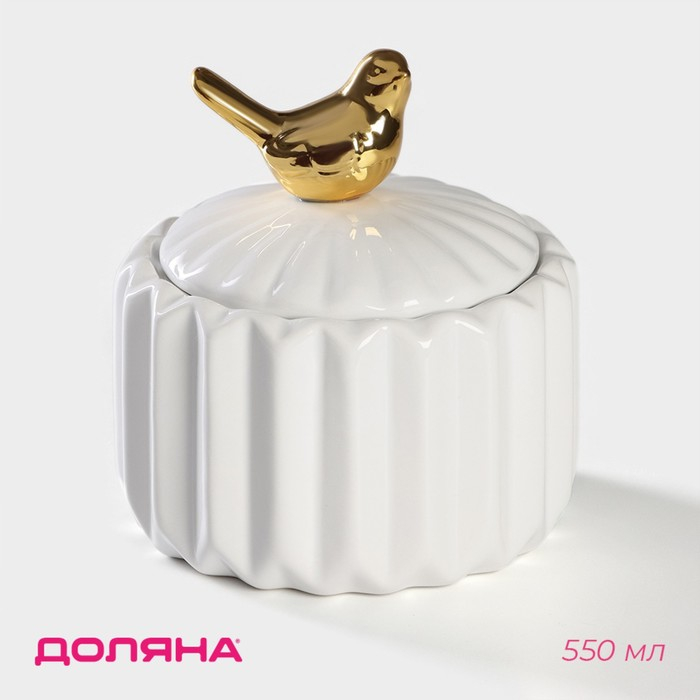 Банка для хранения сыпучих продуктов Доляна «Золотое крыло», 550 мл, 12×14 см, керамическая, цвет белый