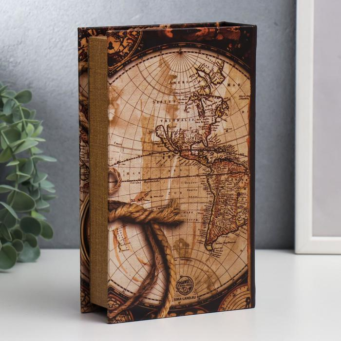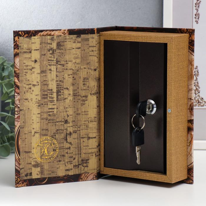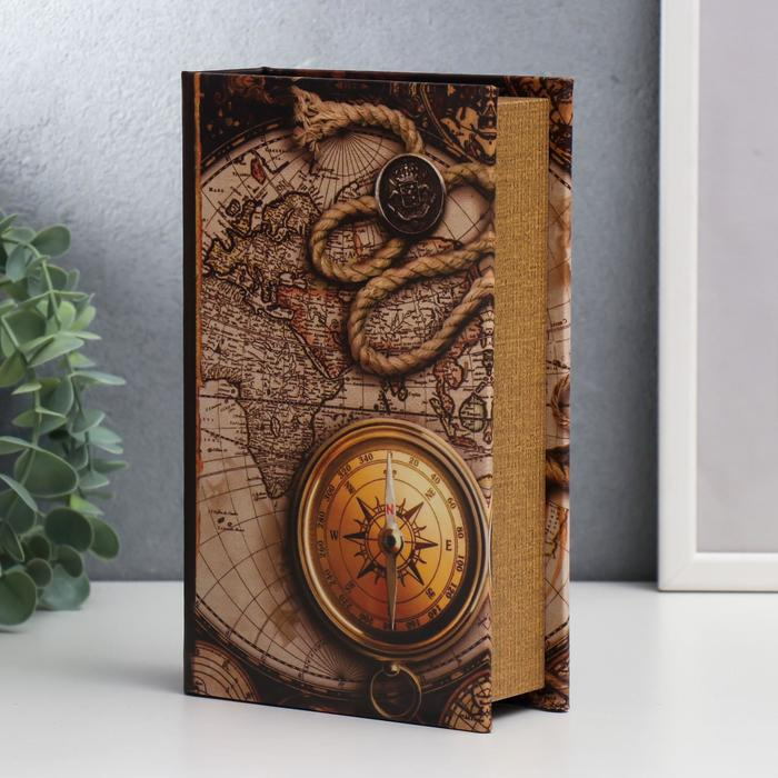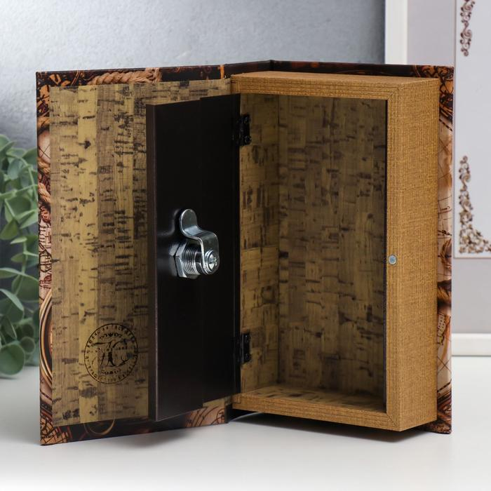Сейф-книга дерево, кожзам "Старые карты и золотой компас" 21х13х5 см