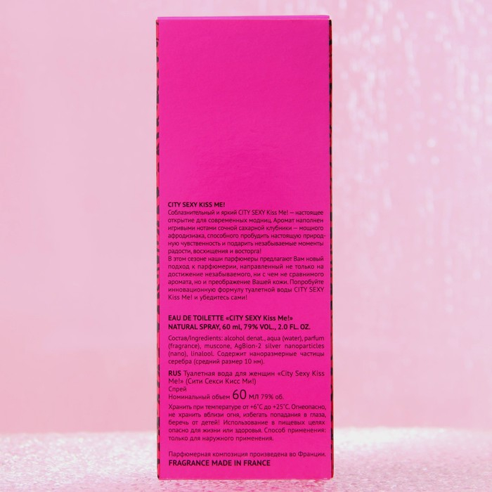 Соблазнительный и яркий CITY SEXY Kiss Me! – настоящее открытие для современных модниц! Аромат наполнен игривыми нотами сочной сахарной клубники – мощного афродизиака, способного пробудить настоящую природную чувственность и подарить незабываемые моменты радости, восхищения и восторга!