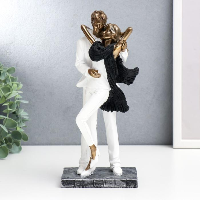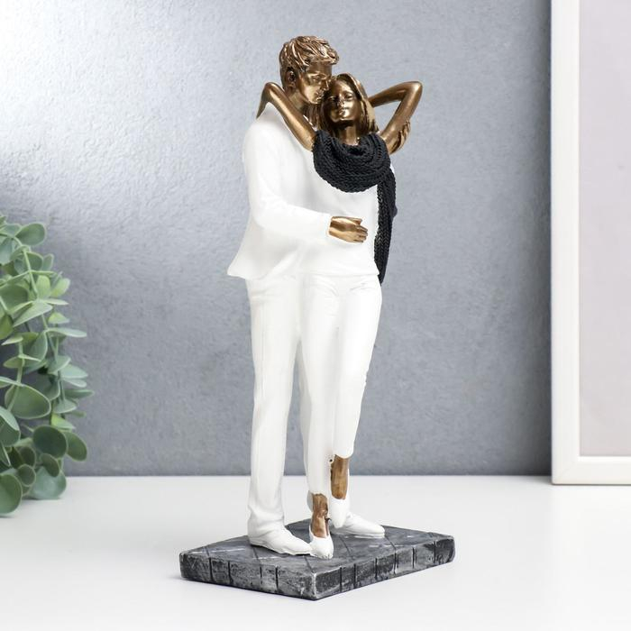 Сувенир полистоун "Влюблённые в белой одежде, с шарфом" под бронзу 25х9х12 см