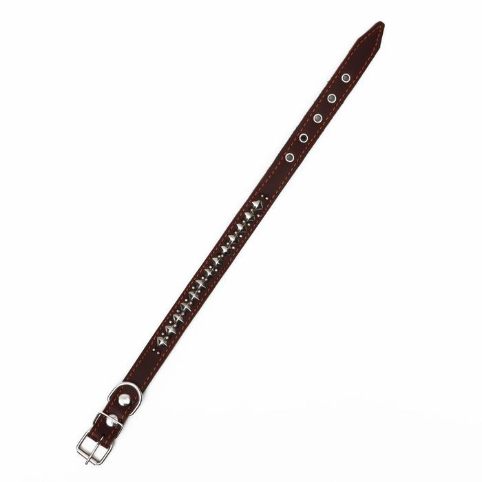 Ошейник кожаный на синтепоне "Ёж", 56 х 2.5 см, ОШ 35-45 см, коричневый