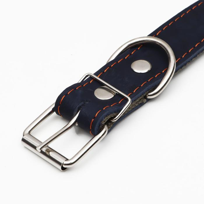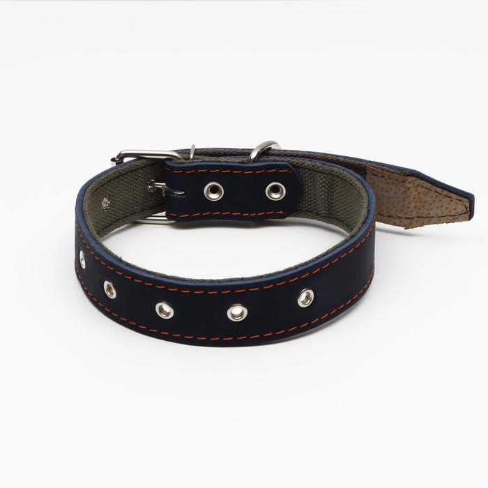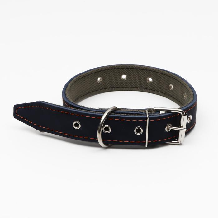 Ошейник комбинированный кожа/брезент, безразмерный, 70 х 3,5 см, ОШ 25-60 см, синий