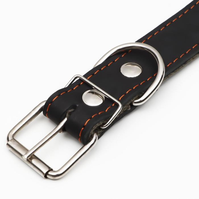 Ошейник комбинированный безразмерный, кожа/брезент, 65 х 3,5 см, ОШ 31-61 см, чёрный