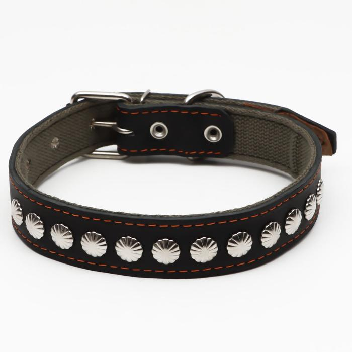 Ошейник комбинированный кожа/брезент, 69 х 3,5 см, украшенный, ОШ 45-60 см, чёрный