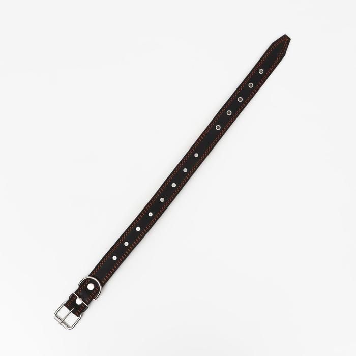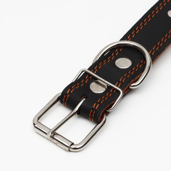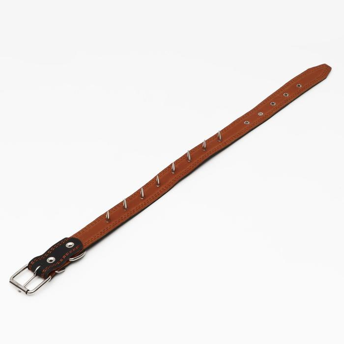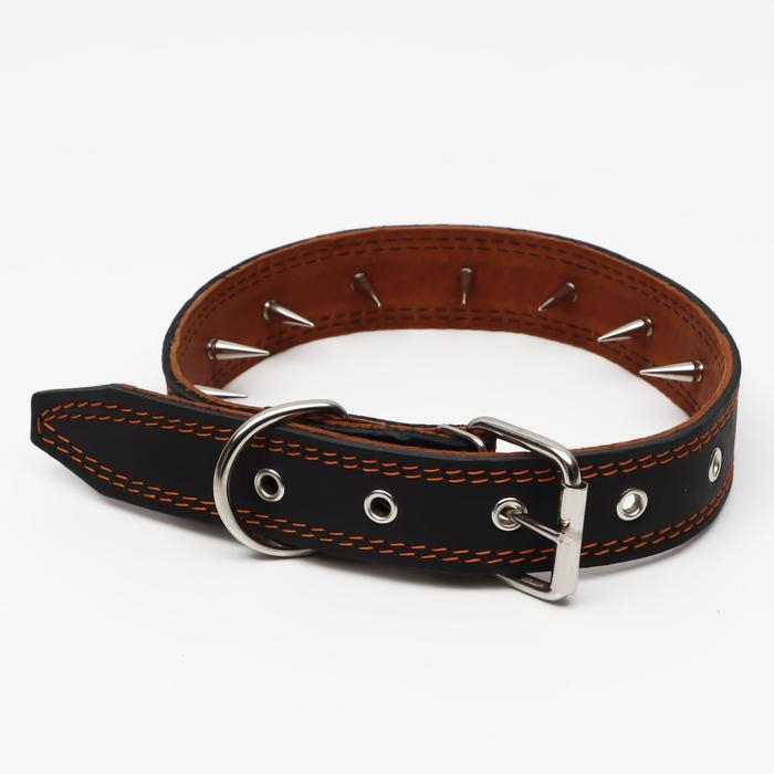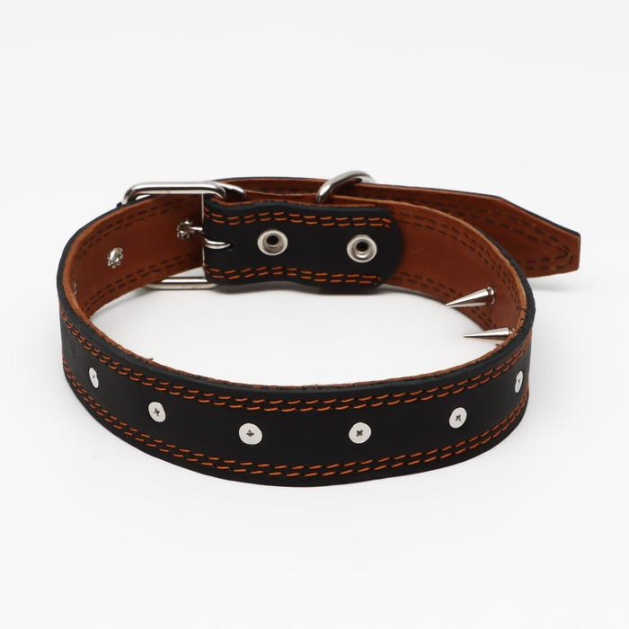 Ошейник кожаный "Строгий шип", 70 х 3,5 см, ОШ 45-60 см, чёрный