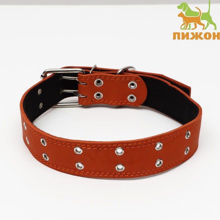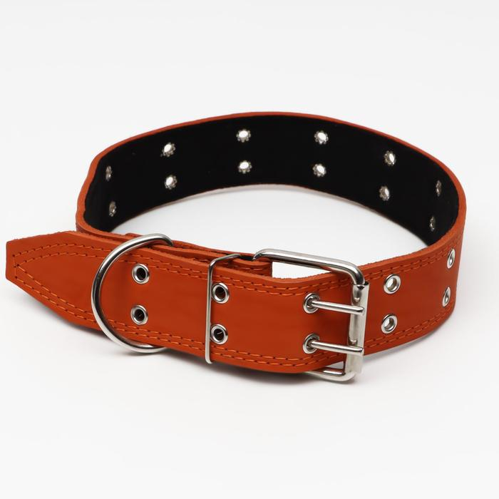 Ошейник кожаный на синтепоне, безразмерный, 83 х 4.5 см, ОШ 20-71 см, оранжевый
