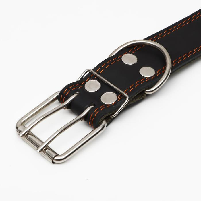 Ошейник кожаный на синтепоне, 82 х 4.5 см, ОШ 50-70 см, чёрный