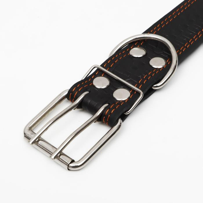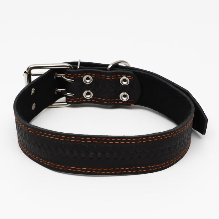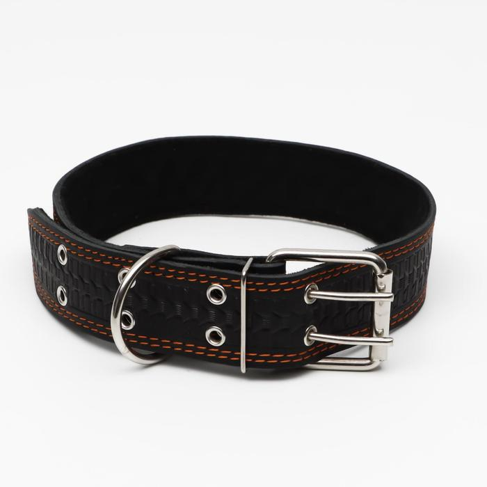 Ошейник кожаный с тиснением на синтепоне, 85 х 4.5 см, ОШ 50-70 см, чёрный