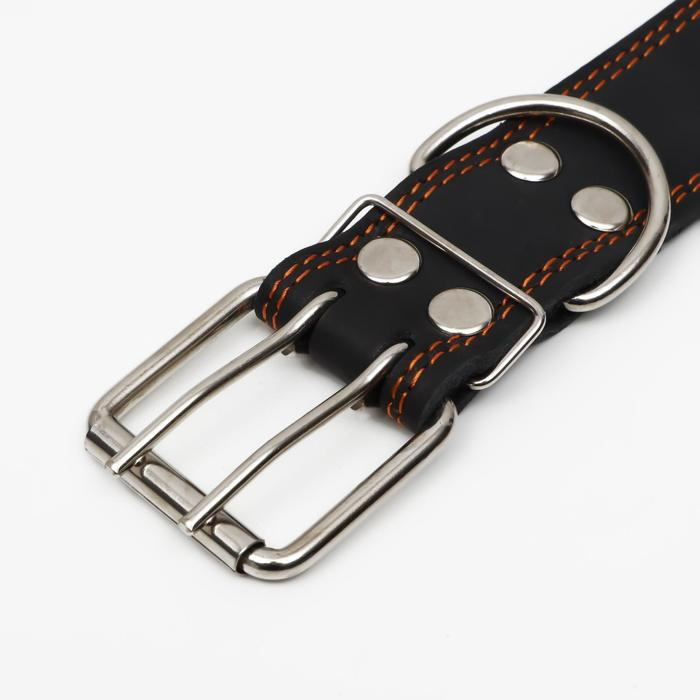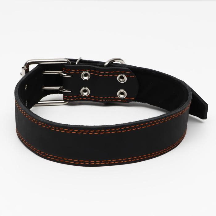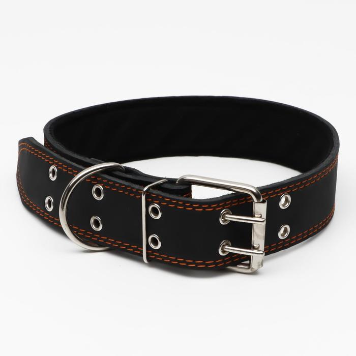 Ошейник кожаный на синтепоне, 82 х 4.5 см, ОШ 50-70 см, чёрный