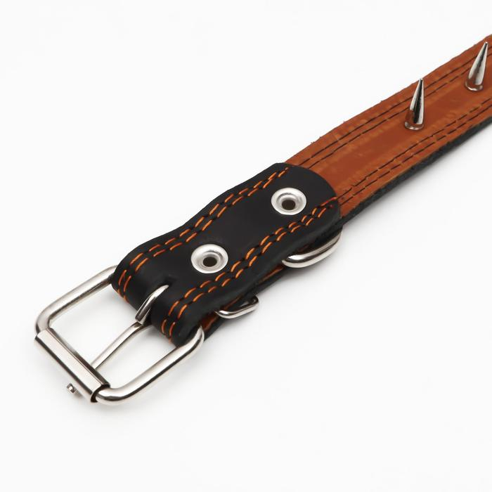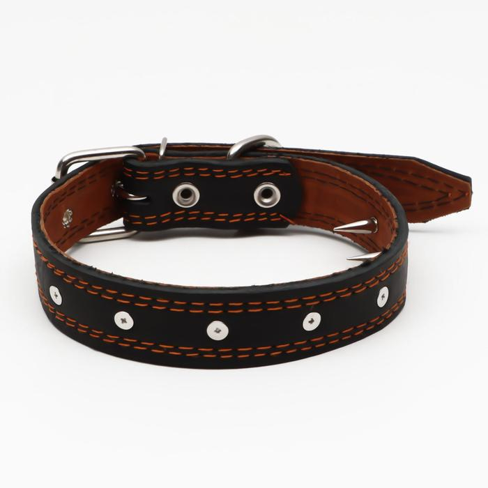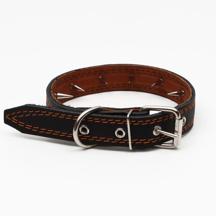 Ошейник кожаный "Строгий шип", 65 х 3 см, ОШ 40-55 см, чёрный