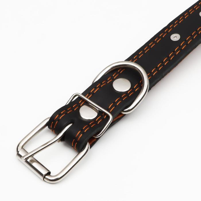 Ошейник кожаный однослойный, клёпаный, 60 х 3 см, ОШ 45-57 см, чёрный
