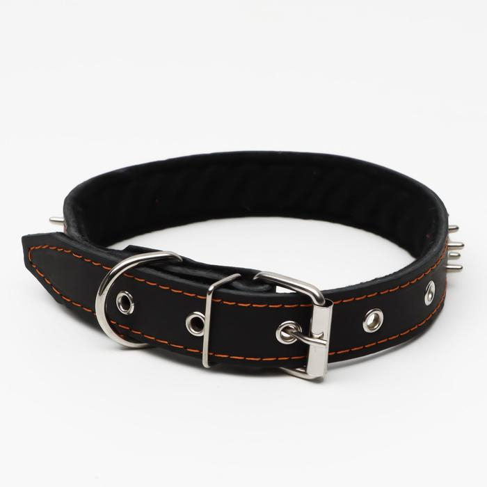 Ошейник кожаный двухслойный шипованный, 63 х 3 см, ОШ 40-55 см, чёрный