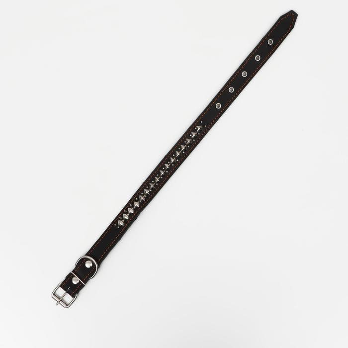 Ошейник кожаный однослойный, клёпаный, 60 х 3 см, ОШ 45-57 см, чёрный