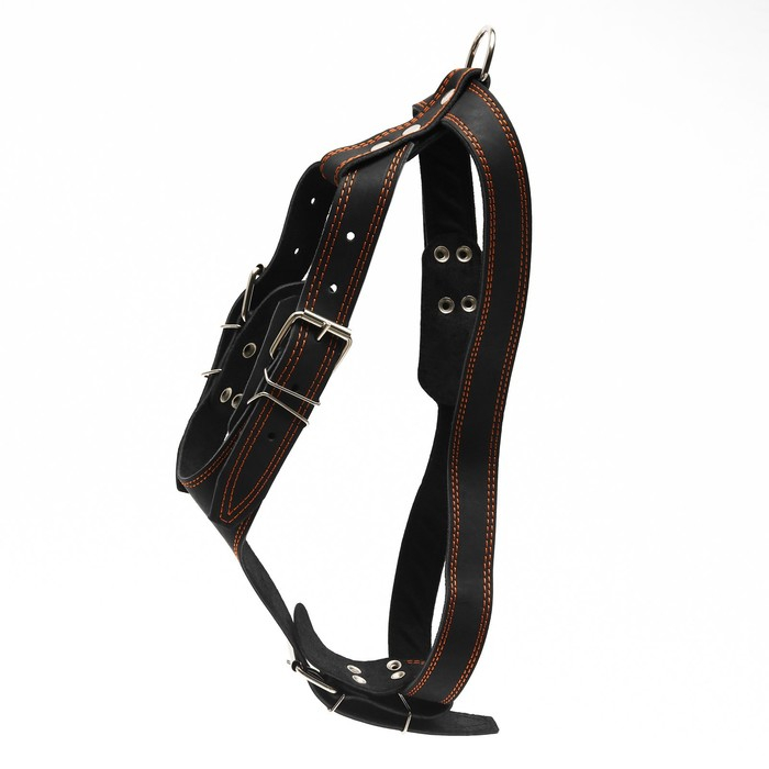 Шлейка кожаная "Караульная" на фетре, 3,6 см, ОШ 40-74 см, ОГ 95-110 см, чёрная