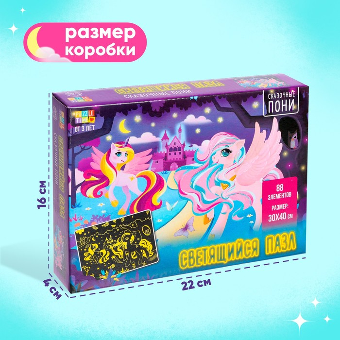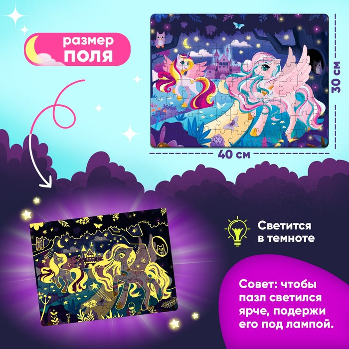 Пазлы светящиеся «Сказочные пони», 88 деталей