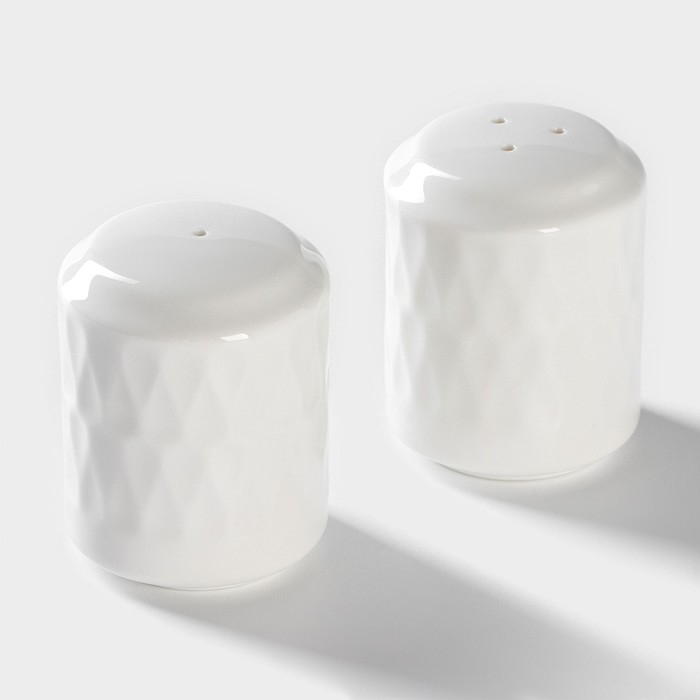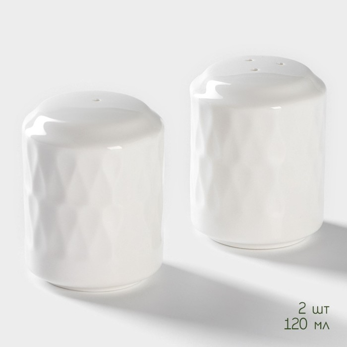 Набор фарфоровый для специй на бамбуковой подставке BellaTenero «Шарики», 2 предмета: солонка 100 мл, перечница 100 мл, цвет белый
