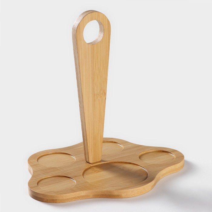 Набор фарфоровый для специй на бамбуковой подставке BellaTenero «Листья», 4 предмета: солонка 120 мл, перечница 120 мл, салфетница, подставка, цвет белый