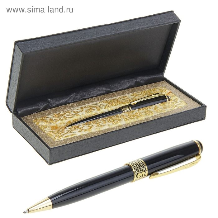 Ручка подарочная, шариковая "Респект" в кожзам футляре, чёрно-золотистая