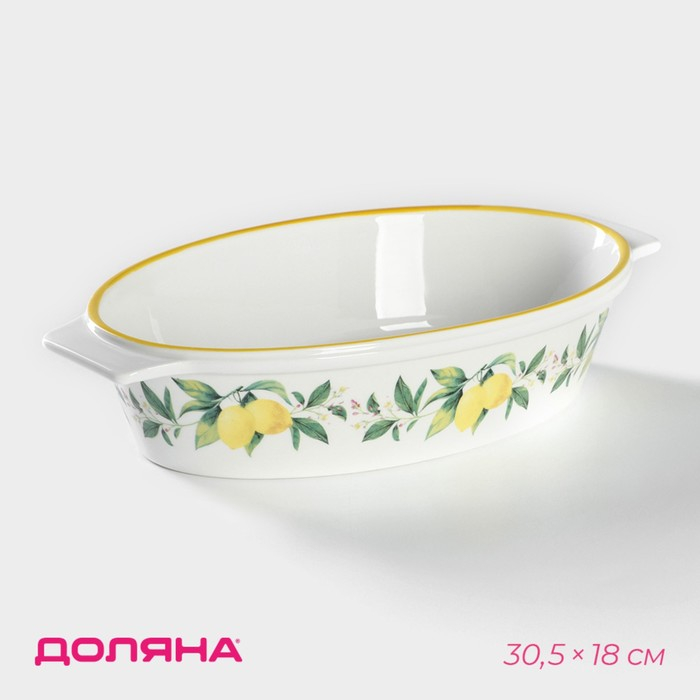 Форма для выпечки из жаропрочной керамики овальная Доляна «Лимон», 30,5×18 см, цвет белый