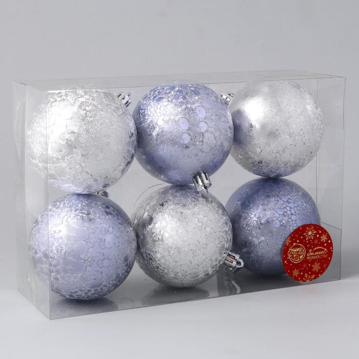 Набор шаров пластик d-8 см, 6 шт "Клоуд метелица" серебро сиреневый