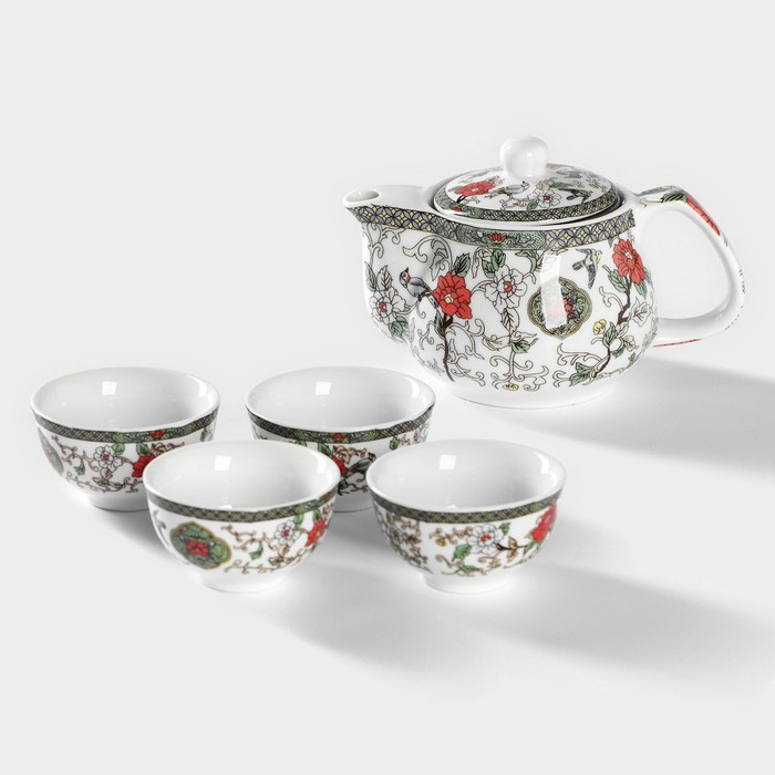 Набор для чайной церемонии керамический «Цветение», 5 предметов: 4 пиалы 30 мл, чайник 200 мл