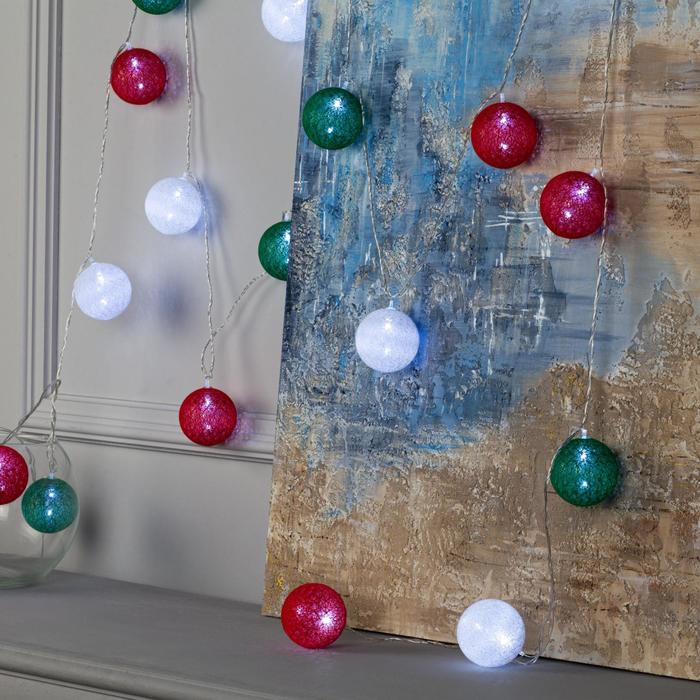 Светодиодная гирлянда с шариками из ниток станет прекрасным решением для создания праздничной атмосферы и уюта в интерьере. Она украсит карниз в спальне, стены в детской, фотозону или даже офисное помещение. Также гирлянда может служить отличным ночником для вашего малыша, а в спальне добавит интерьеру нежных красок и мягкий свет.