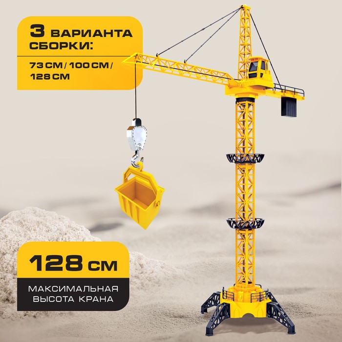 Кран «Стройка», дистанционное управление, 3 варианта сборки, высота 1,28 м, цвет жёлтый