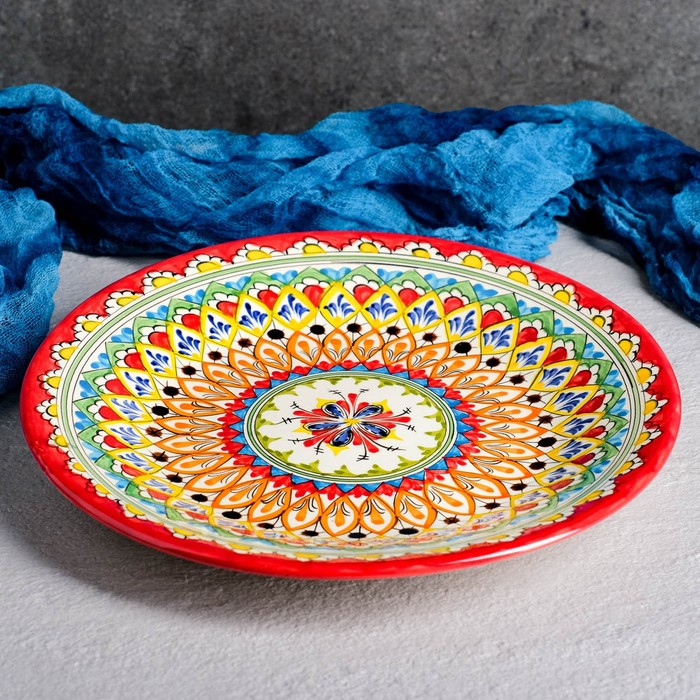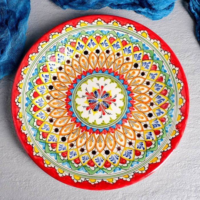 Тарелка Риштанская Керамика "Кора Калам", 27 см, разноцветная