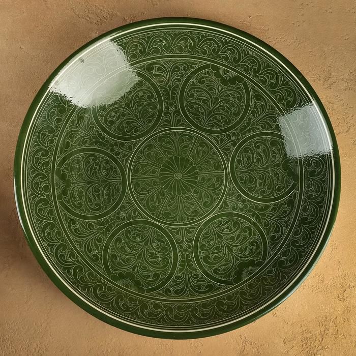 Ляган Риштанская Керамика "Узоры", 42 см, зелёный