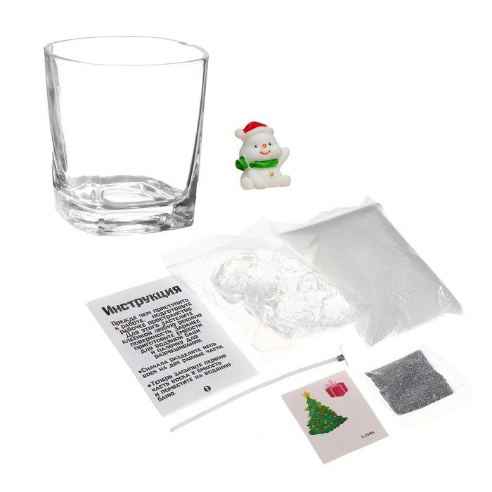 В наборе: баночка, фитиль, гель, фигурка, декор, блёстки.