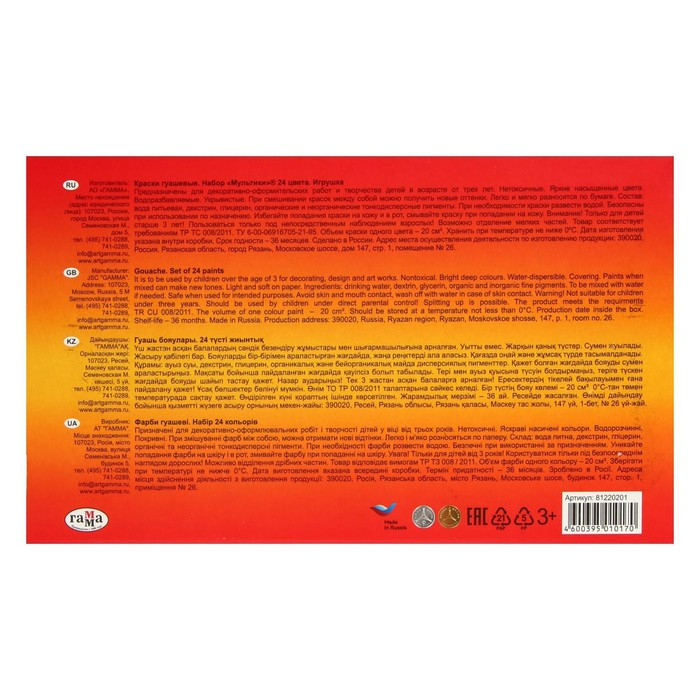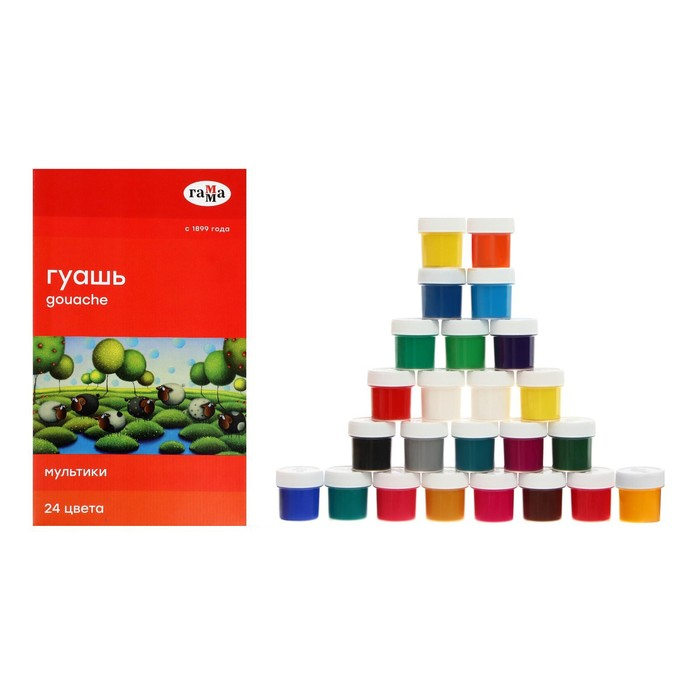 Гуашь 24 цвета х 20 мл "Гамма" "Мультики"