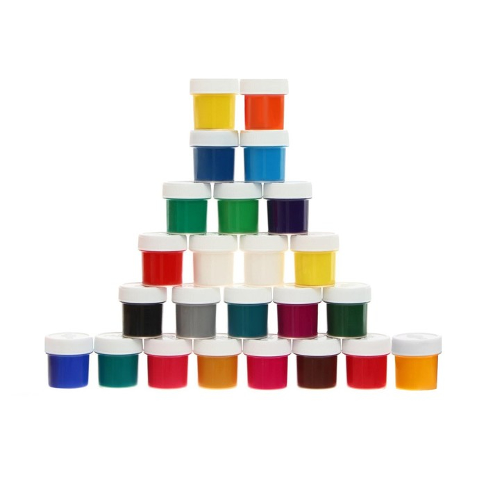 - Гуашь фасуется в пластиковые герметичные баночки с завинчивающейся крышкой.