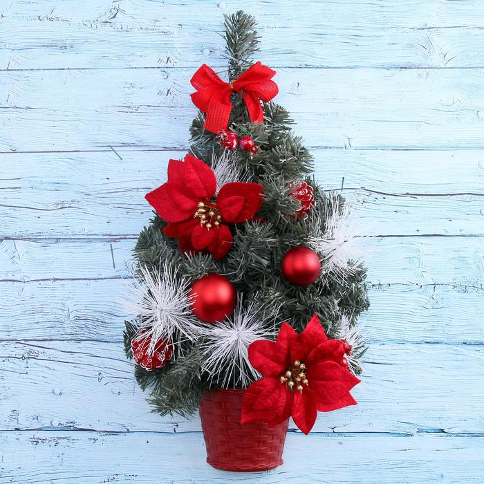 Ёлка декор настенная "С сединой, пуансетия" 50 см