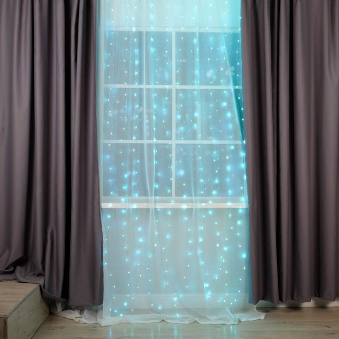 Гирлянда «Занавес» 2.8 × 3 м роса на крючках, с пультом, IP20, серебристая нить, 300 LED, свечение аквамарин, 8 режимов, USB