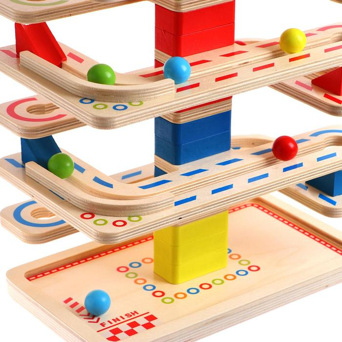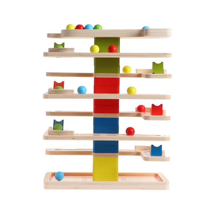 - В комплекте: игровой комплекс с пятью уровнями, 16 шариков.