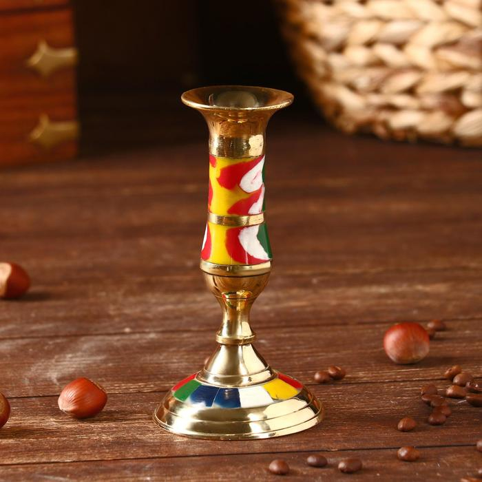 Подсвечник "Радуга" латунь, перламутр 7,5х7,5х14,5 см