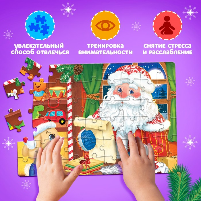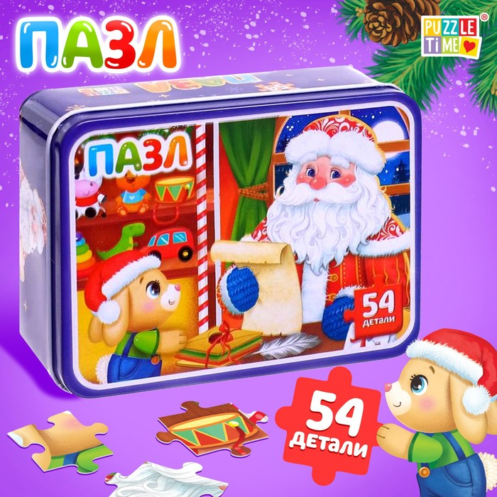 Пазлы в металлической коробке «Домик Дедушки Мороза», 54 детали