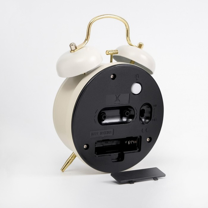 - Будильник оснащён кварцевым механизмом с дискретным ходом стрелок.