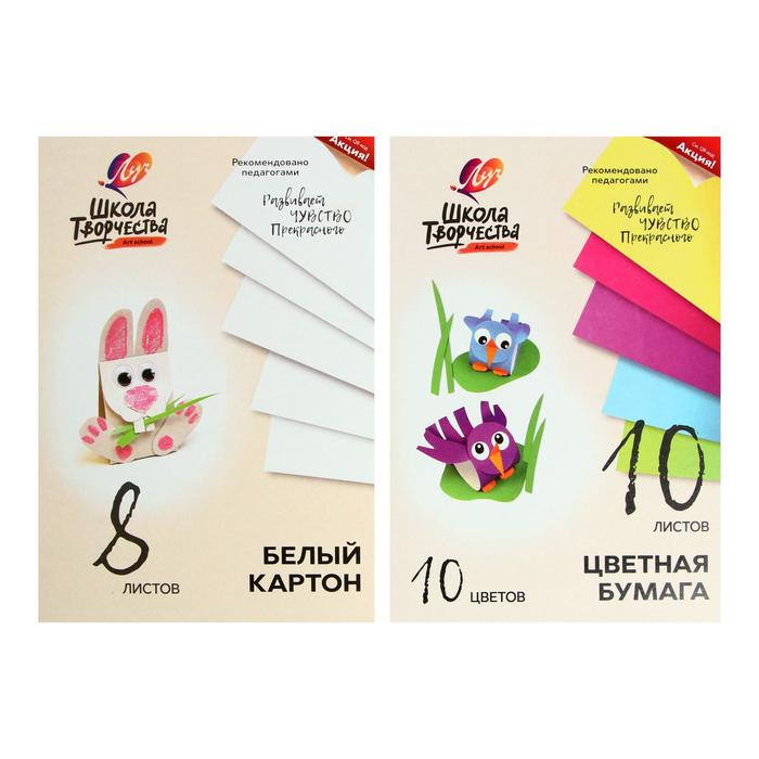 - Набор белого картона "Школа творчества" 8 листов немелованный.