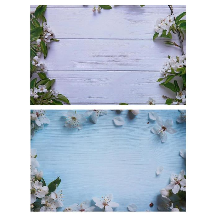 Фотофон двусторонний бумага 300 гр "Яблочный цвет на голубом и белом" 57х87 см