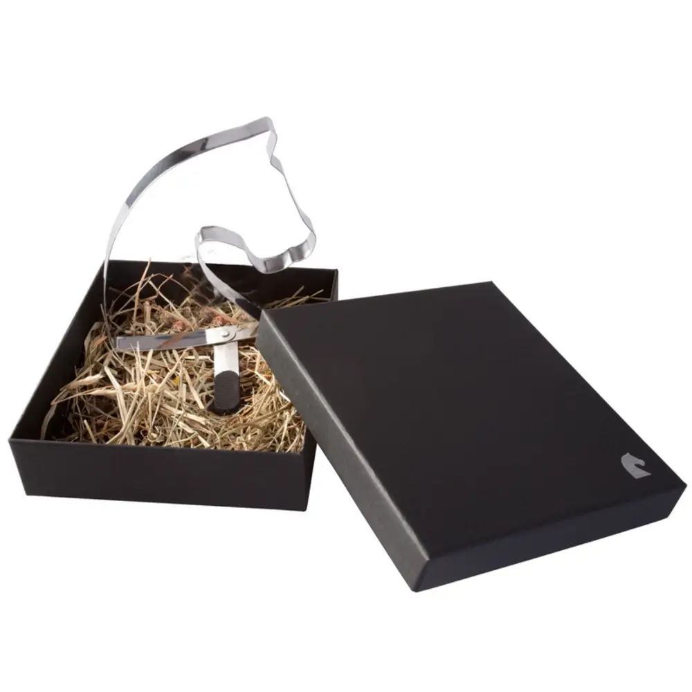 - дополнена дизайнерской упаковкой с оригинальным наполнителем — экологически чистым сеном