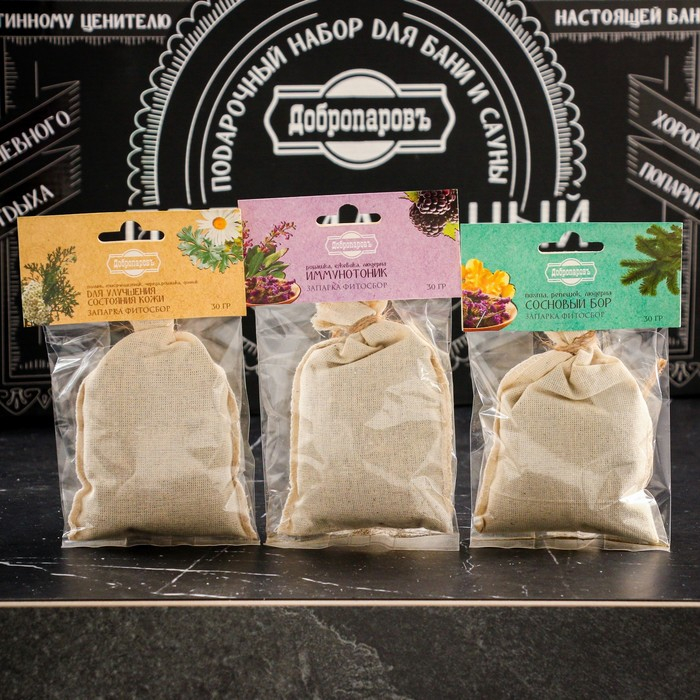 - Запарка фитосбор – 3 шт (для улучшения состояния кожи, иммунотоник, сосновый бор)