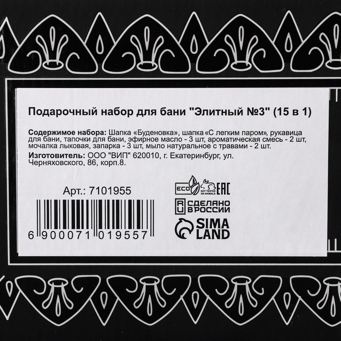 Аромамасло, Ароматизатор, Запарка, Мыло, Рукавица, Тапочки, Шапка