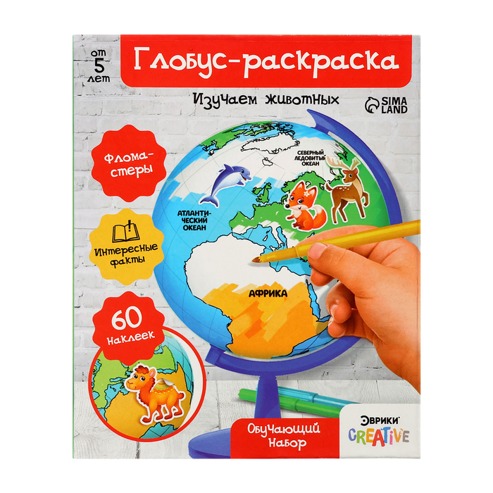 Обучающий набор «Глобус-раскраска», изучаем животных
