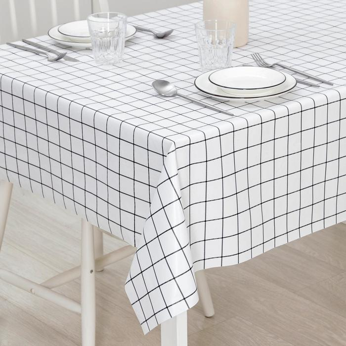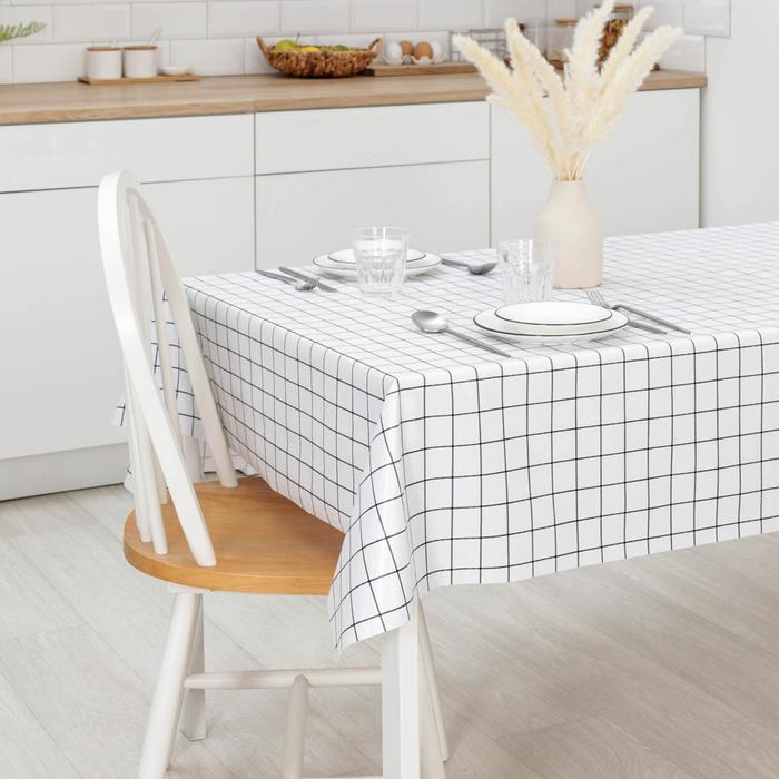 Клеёнка на стол «Клетка», на тканевой основе, ширина 137 см, рулон 20 м, толщина 0,25 мм, цвет белый