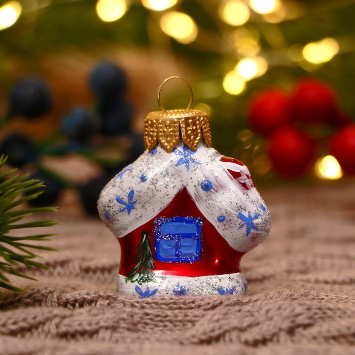 Ёлочная игрушка "Избушка" ручная роспись, 5,8х4,3х2,8 см, красный