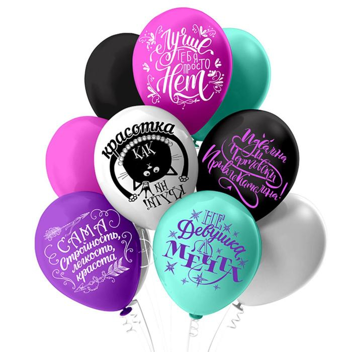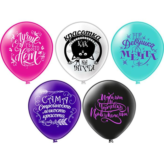 Шар латексный 12" «Комплимент для неё! Как ни крути…», шелкография, 2-сторонний, 5 дизайнов, набор 25 шт., МИКС